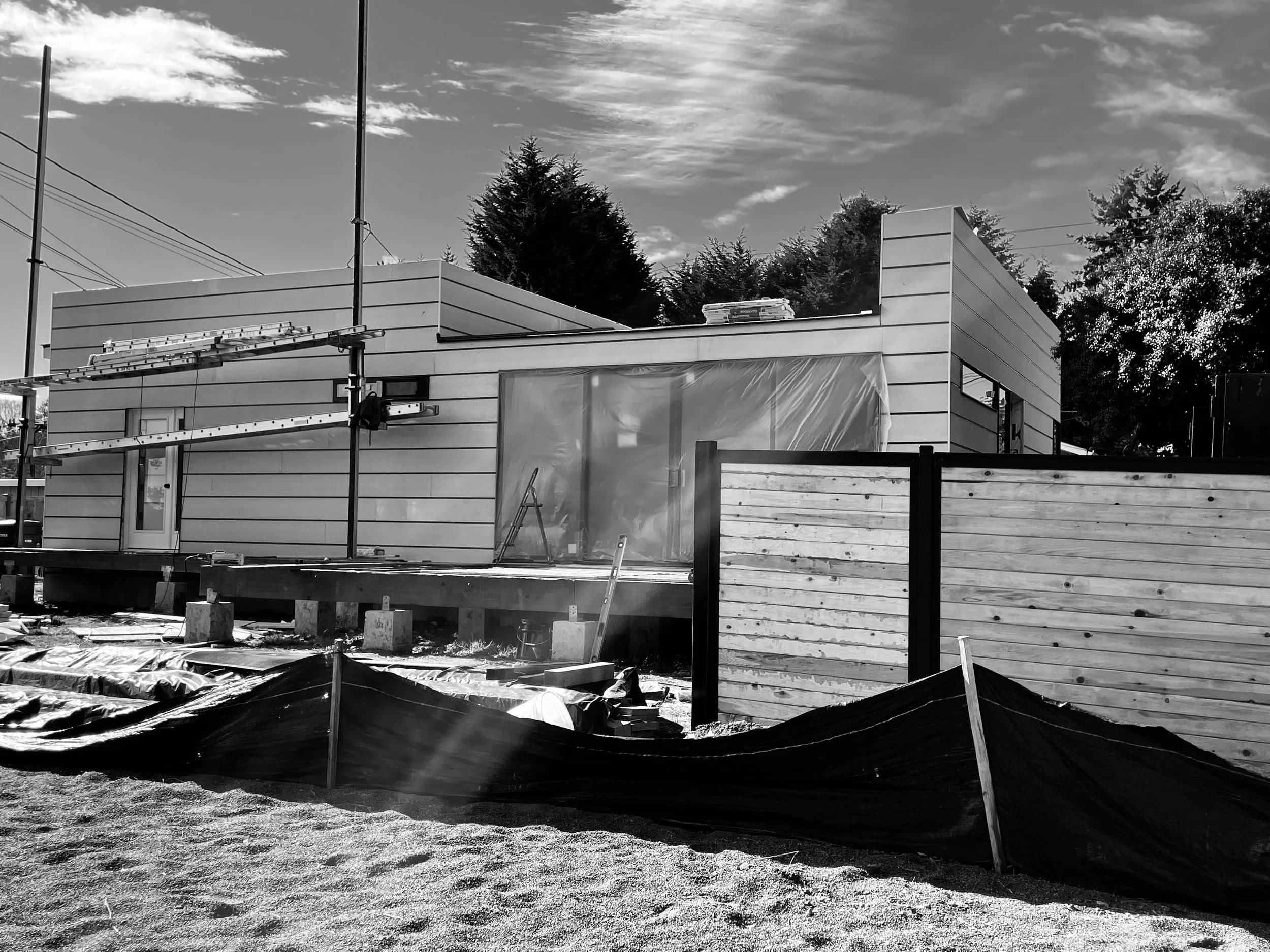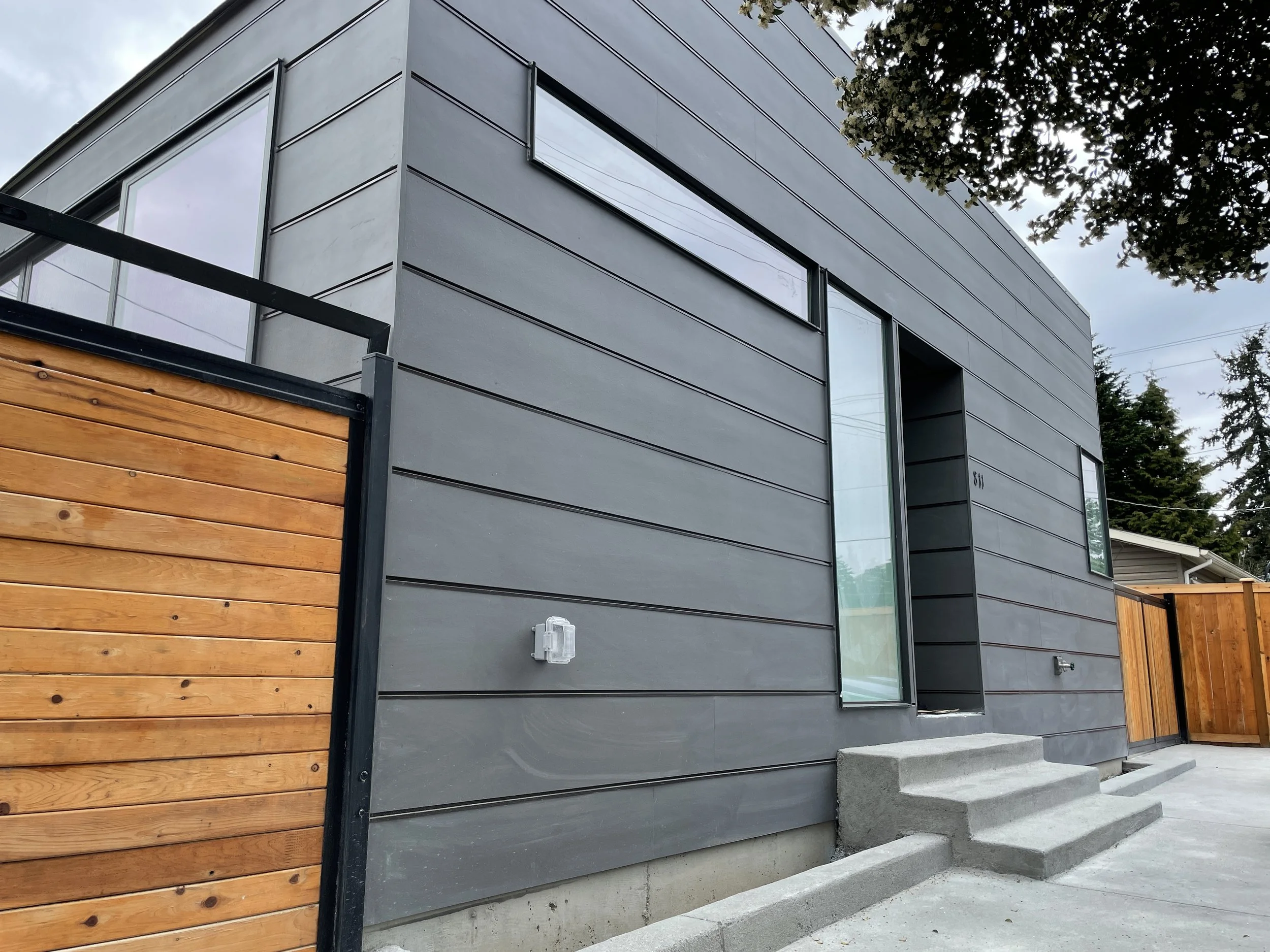 Located in a cul-de-sac near the Sea-Tac airport, this small single-family house required double ply. layers and triple-pane windows for noise suppression.