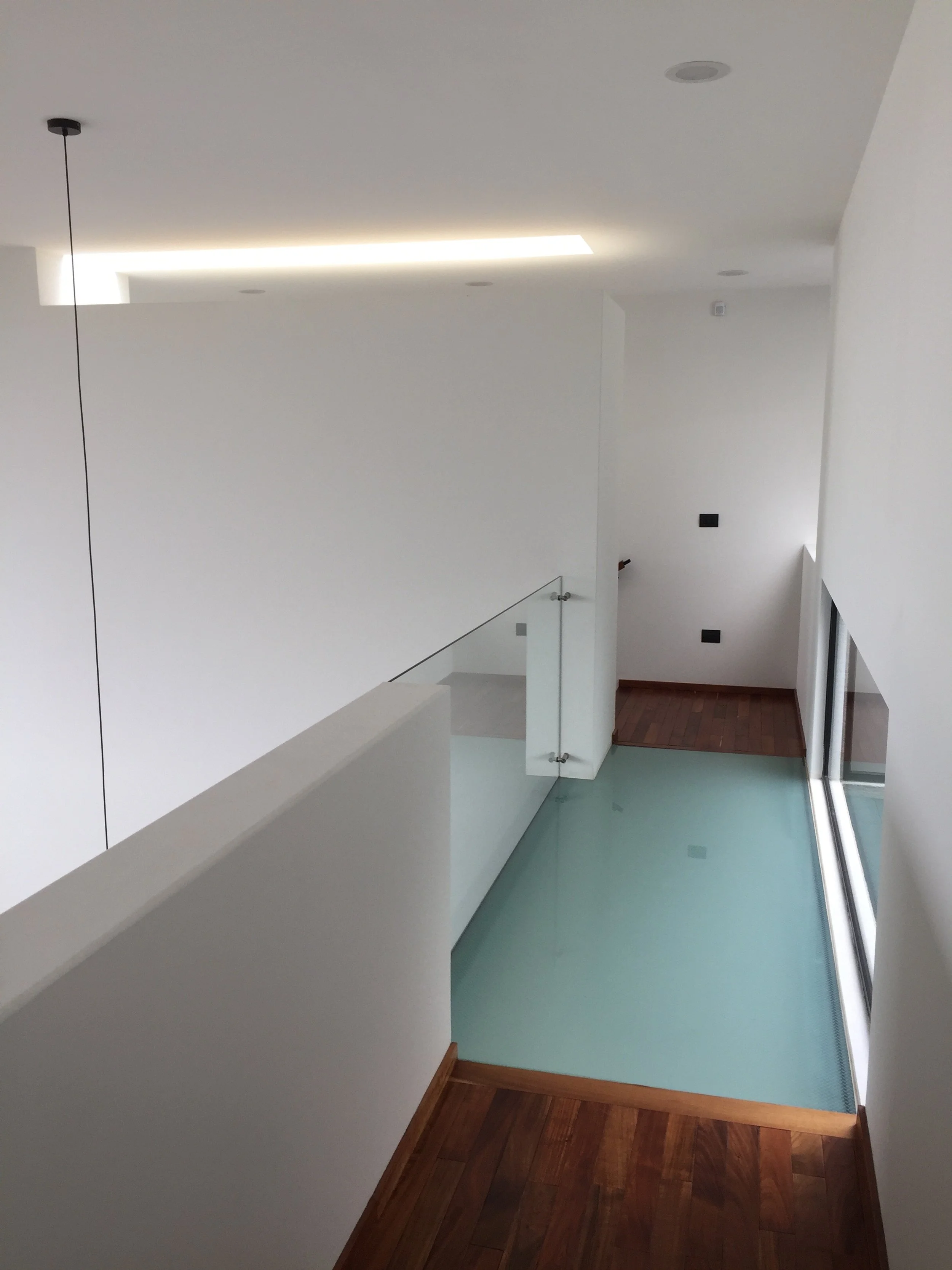Designed for a family of four and their pets, Bernarda the puppy, and Picasso the rabbit. Hosting family reunions and entertaining is core to the program narrative; a double-height social area with a glass curtain wall opens to an ample terrace. The house faces south with amazing views of the green. The natural light is reflected and choreographed over the walls as ever-changing paintings on a white canvas. And circulations are discovery pathways that guide the spectator through light patterns and minimalistic shapes. Materials are limited to white and lime massonry walls, steel, natural woods, and glass.
